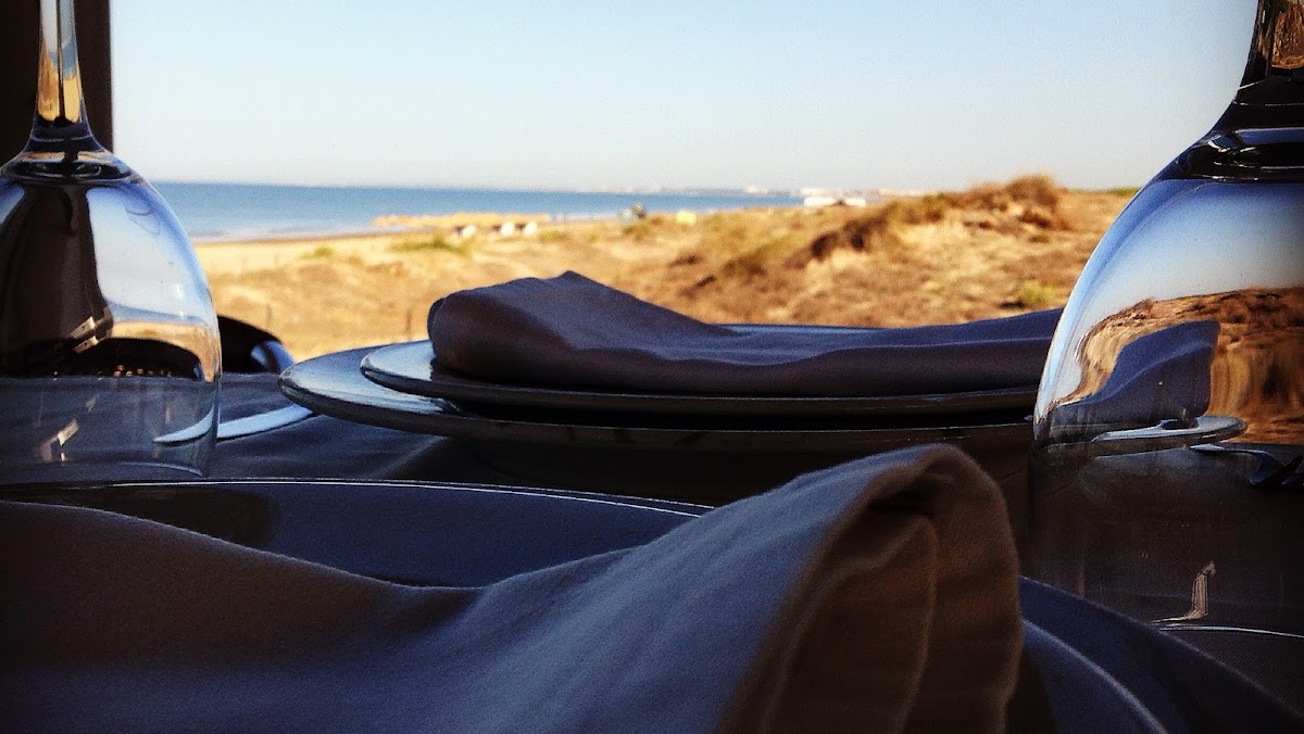 High quality on the beach where you need it! Sliced tomatoes (tomate añilado)excellent, gazpacho (in a glass) fabulous. Dorada was great. Choco (cuttlefish) was OK). Rapid - but gruff - service by competent camereros. House white wine excellent.