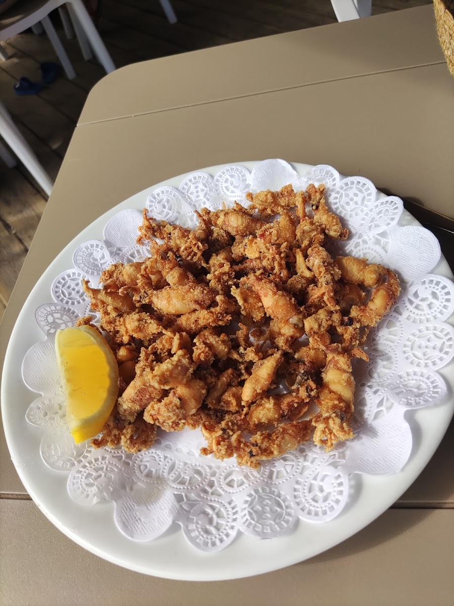 We had a fabulous meal here. It was a very quiet Monday evening and we had a table overlooking the ocean. Our seafood starters were delicious and we enjoyed Monkfish salsa verde and Lamb Chops with fried potatoes as mains which was all beautifully cooked. The local wine was excellent and our friendly waiter helped us navigate the menu. Would highly recommend.